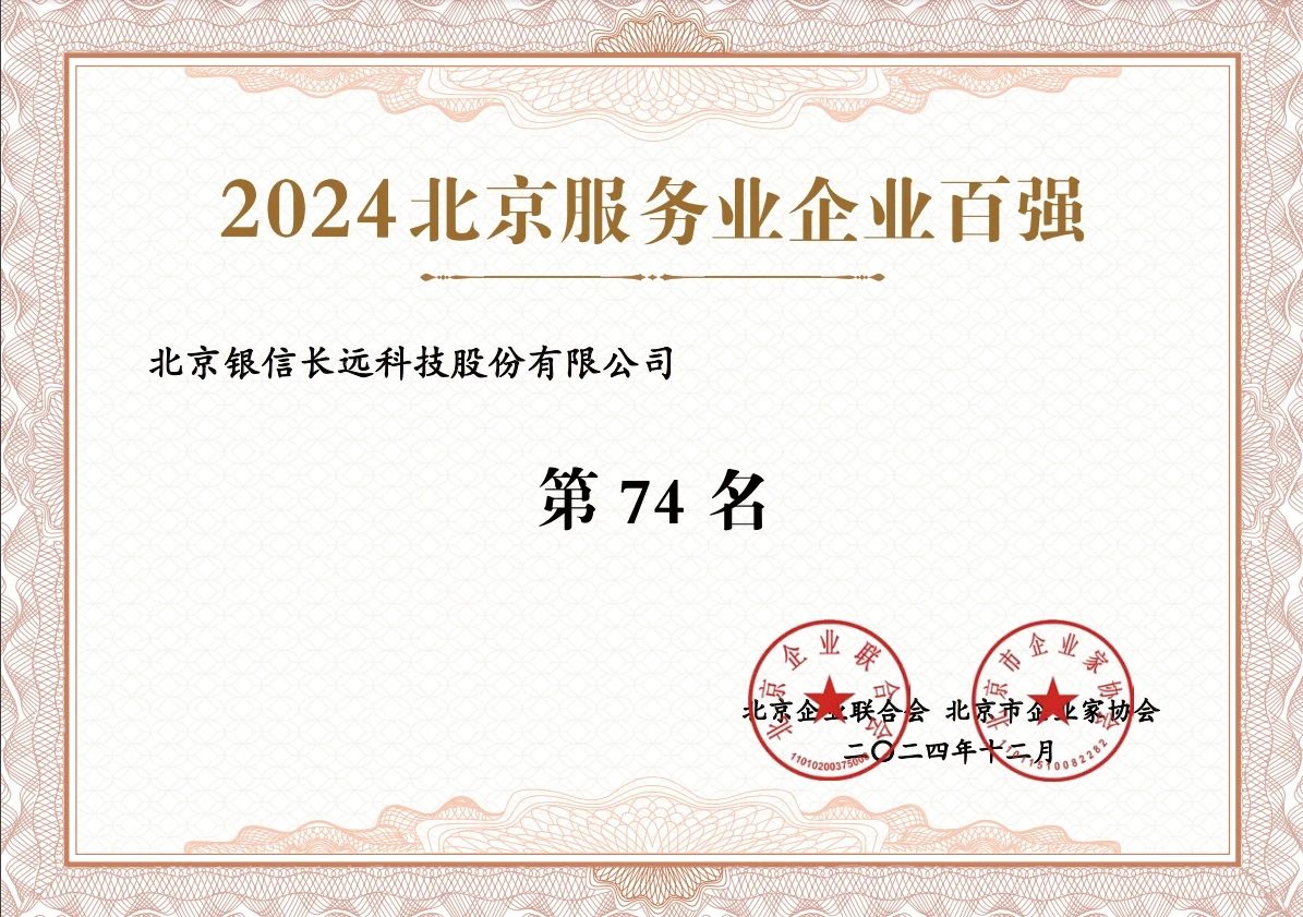 • 銀信科技榮獲“北京市企業(yè)創(chuàng)新信用領(lǐng)跑企業(yè)”稱(chēng)號(hào) 2024-12-20